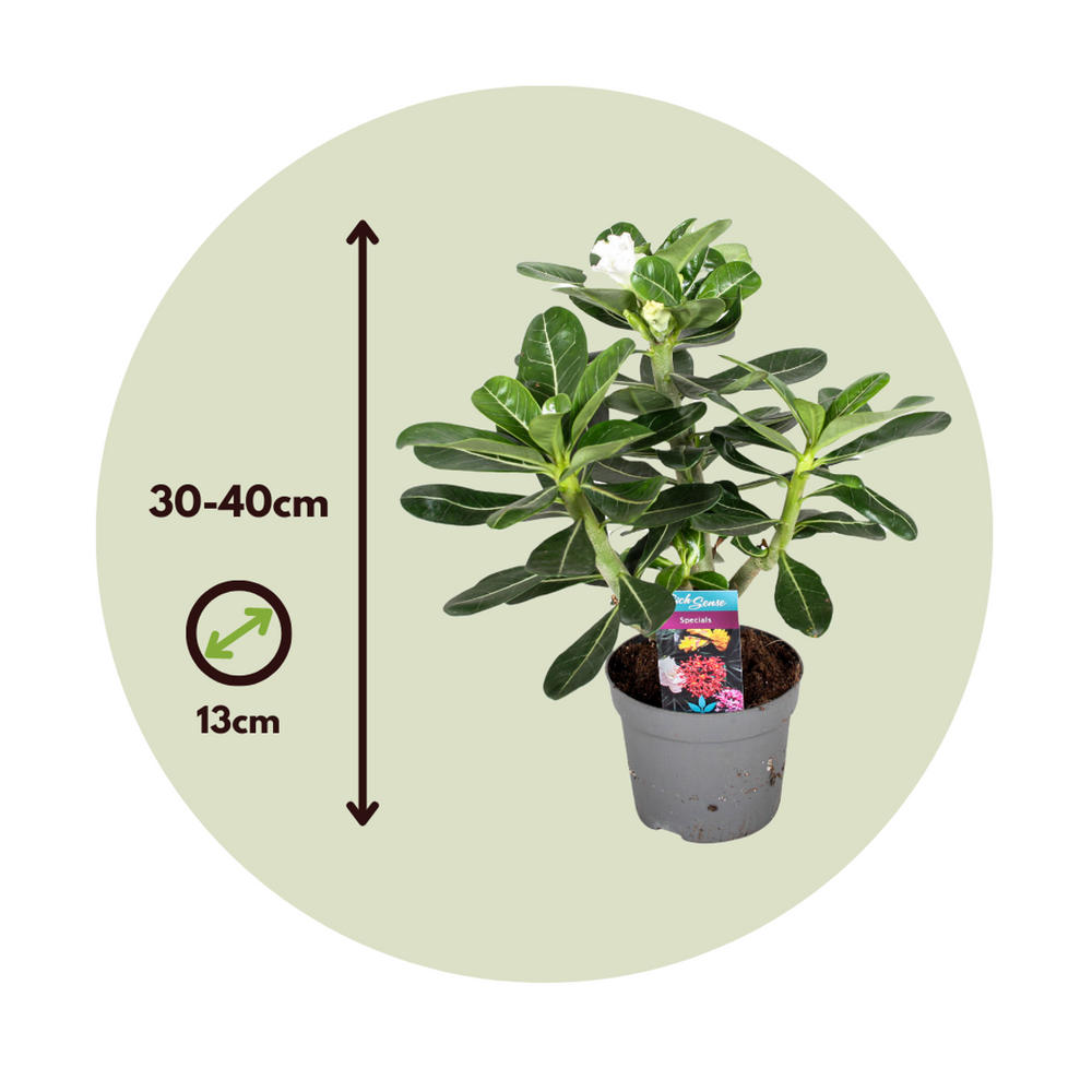 Adenium, poznatiji kao pustinjska ruža, izuzetno je lijepa biljka. Kao što i samo ime govori, potječe iz suhih pustinjskih područja istočne i sjeveroistočne Afrike. Tamo Adenium može narasti do 5 metara visine s prekrasnim, golim deblom. Srećom, biljka ne raste toliko visoka u zatvorenom prostoru. Upečatljive značajke Adeniuma su prekrasni cvjetovi, svježe zeleni listovi i nepravilan oblik debla.