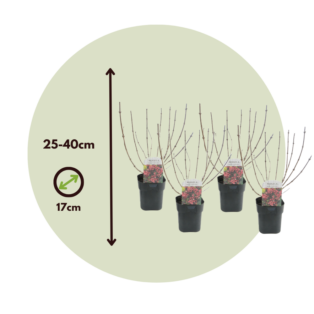Weigela Florida 'Nana Purpurea' je weigela sa zelenkasto-ljubičastim lišćem i prekrasnim ružičastim cvjetovima, koja će uljepšati vaš vrt od svibnja do lipnja. Porijeklom iz istočne Azije, weigela je graciozan grm s obilnim cvjetovima u obliku trube. Idealna je za obrube ili kao samostalni grm u manjim vrtovima. Prepoznatljivi cvjetovi u obliku trube rastu u izduženim grozdovima i privlače medljiku i leptire. Odabir weigele znači odabir živopisnog vrta!